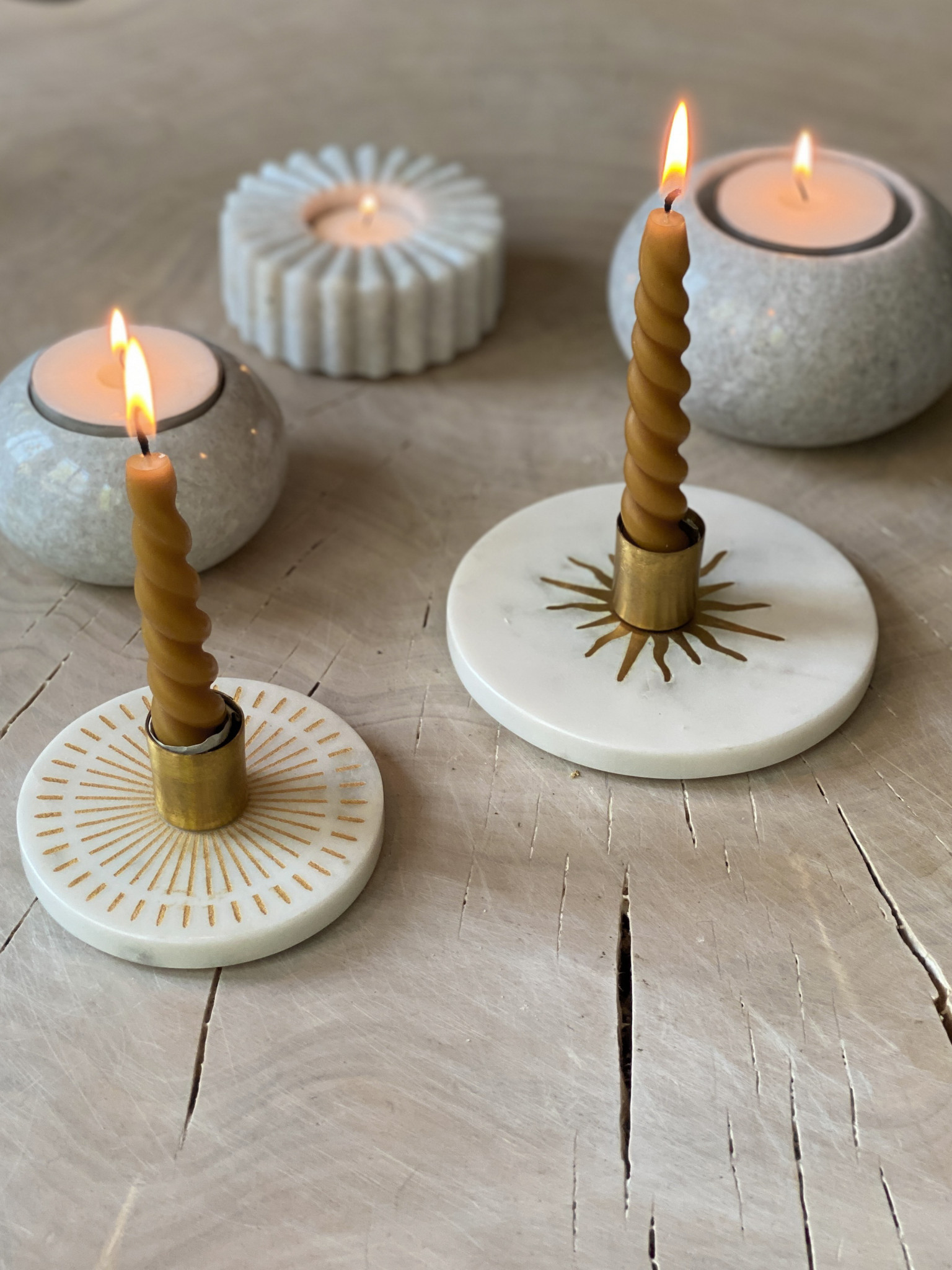 Conçu à la main en Inde, chaque bougeoir est taillé dans un marbre naturel du Rajasthan, offrant des variations subtiles de veines et de teintes, ce qui rend chaque exemplaire unique.