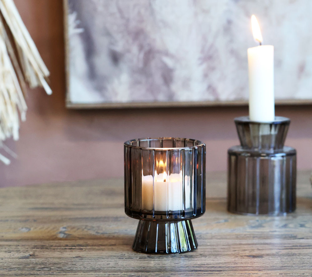 Photophore-Bougeoir en verre moka H8/D6 cm - Double usage