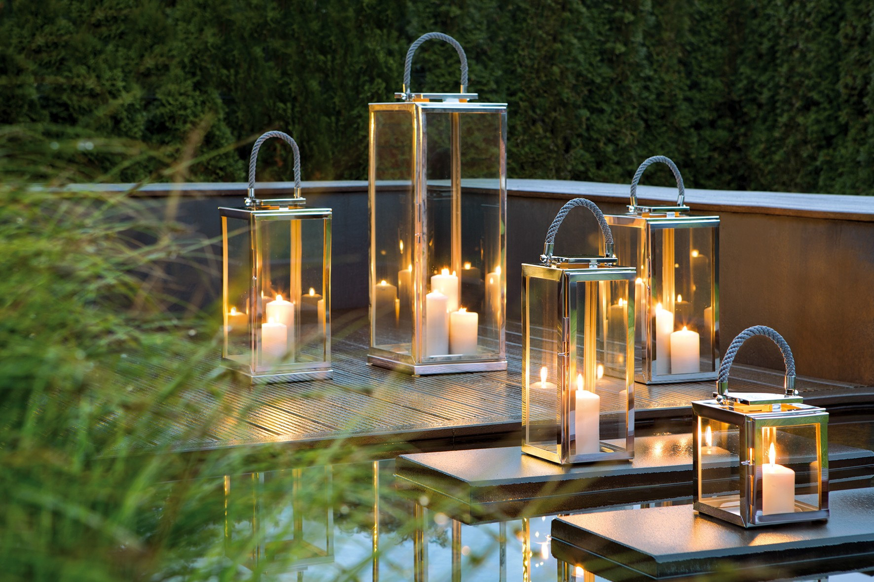 L'acier inoxydable brillant confère à la lanterne SEVILLA une allure moderne et sophistiquée, tandis que le verre transparent permet une diffusion optimale de la lumière des bougies. Grâce à sa conception solide, cette lanterne est idéale pour une utilisation en extérieur, résistant aux intempéries tout en maintenant son éclat et sa fonctionnalité. Elle protège également les bougies du vent, assurant une combustion stable et continue, ce qui en fait l’accessoire parfait pour vos soirées en plein air.