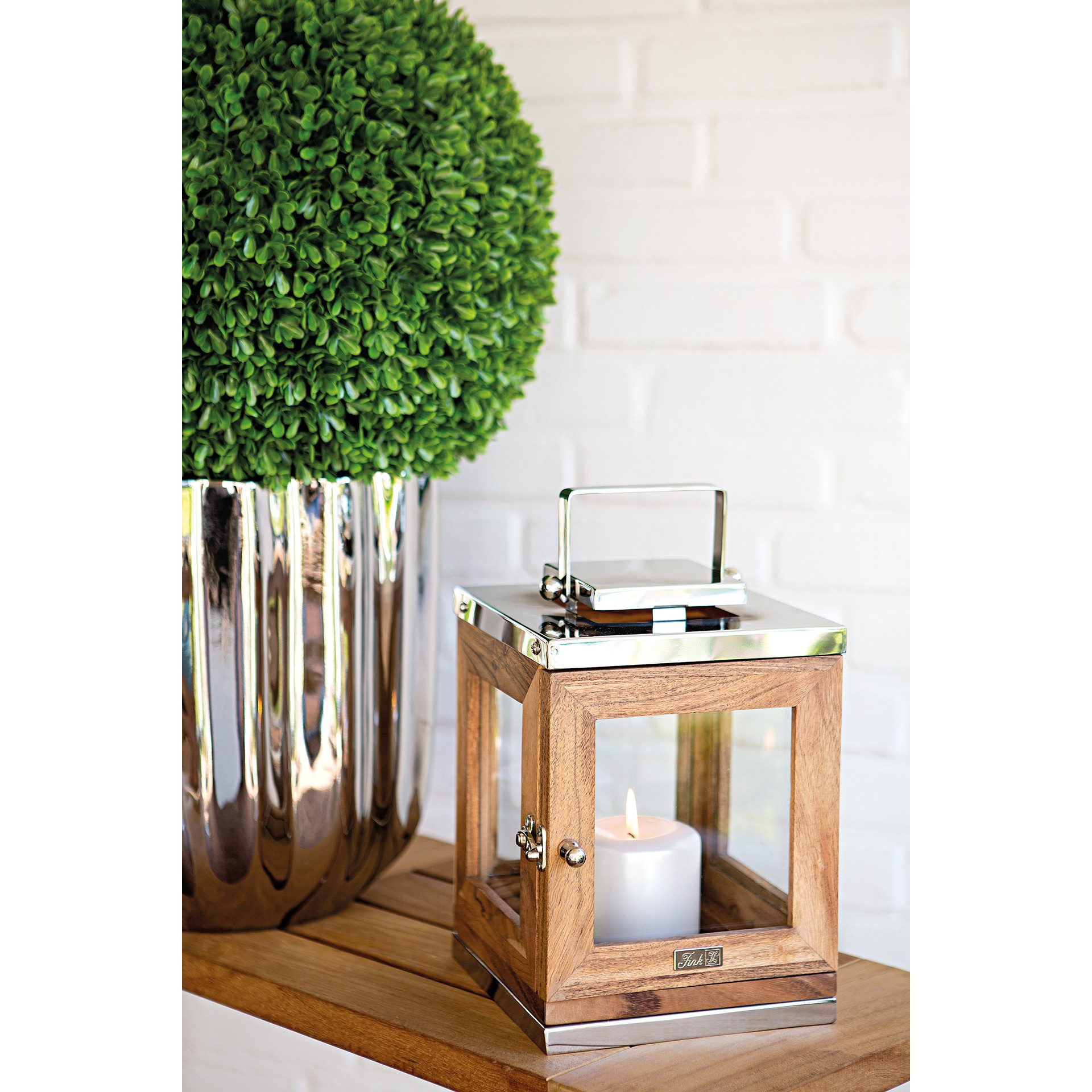 Conçue à partir de bois d’acacia de haute qualité, cette lanterne révèle toute la beauté de ses grains riches et de ses variations naturelles. Chaque pièce est unique, offrant une teinte et une texture singulières. Le bois chaleureux s’allie à des éléments en acier inoxydable brillant, qui ajoutent un contraste moderne et élégant.