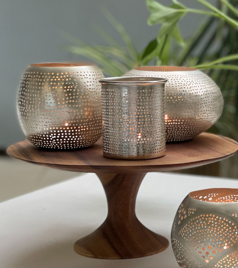 Plus qu’un simple accessoire, ce photophore en laiton argenté est un objet décoratif à part entière. Il apporte une lumière chaleureuse, crée une atmosphère conviviale et met en valeur le savoir-faire artisanal à travers un design discret et soigné.