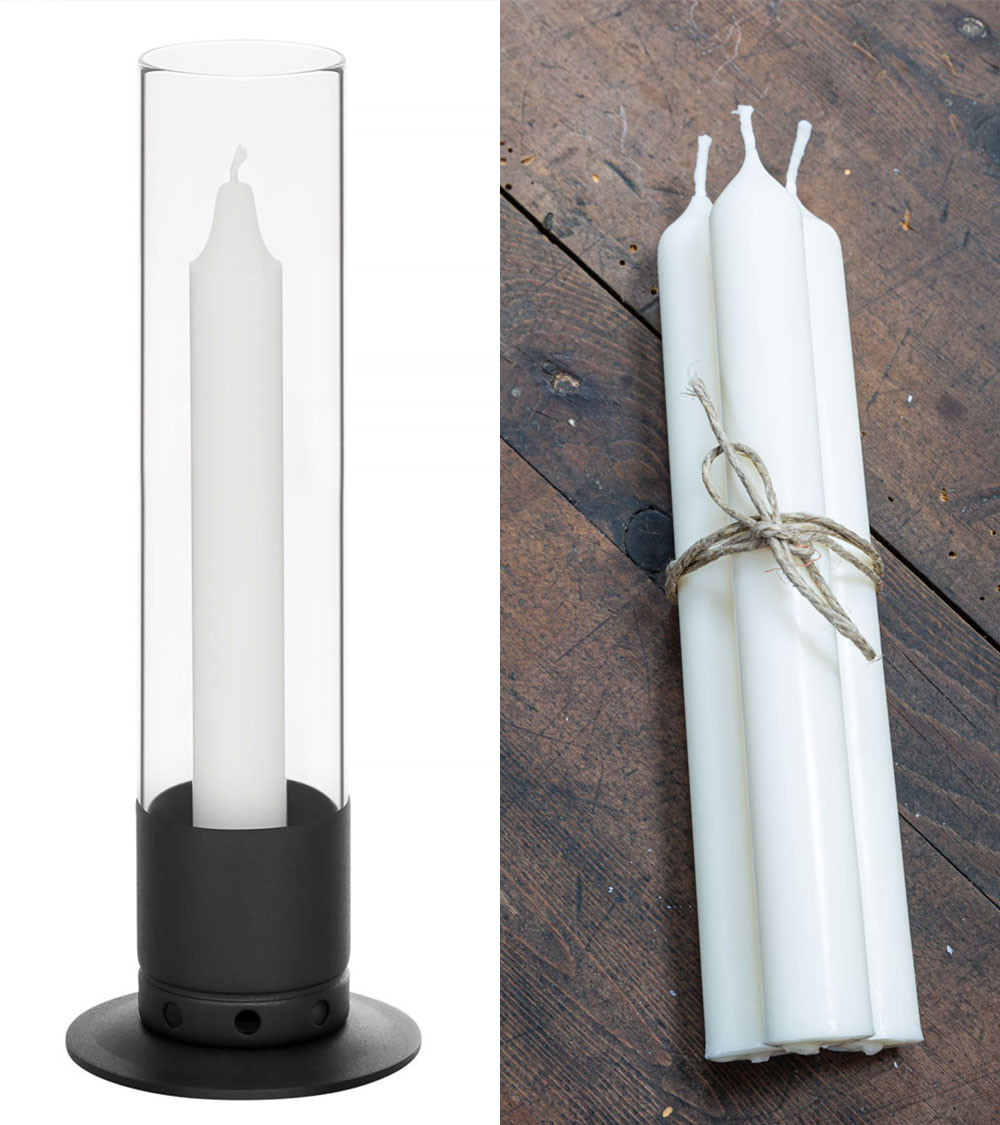 Photophore Kattvik® Noir Mat + 3 bougies naturelles