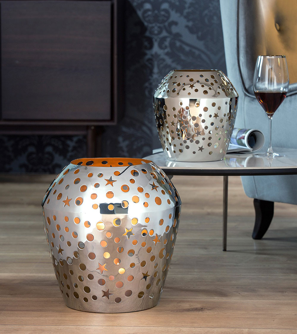 Grâce à ses découpes circulaires et en forme d’étoile, le photophore projette des jeux d’ombres fascinants sur les murs et surfaces environnantes. Allumé, il transforme une pièce en un espace féerique, idéal pour les soirées d’hiver, les fêtes de Noël ou les moments de détente cosy.