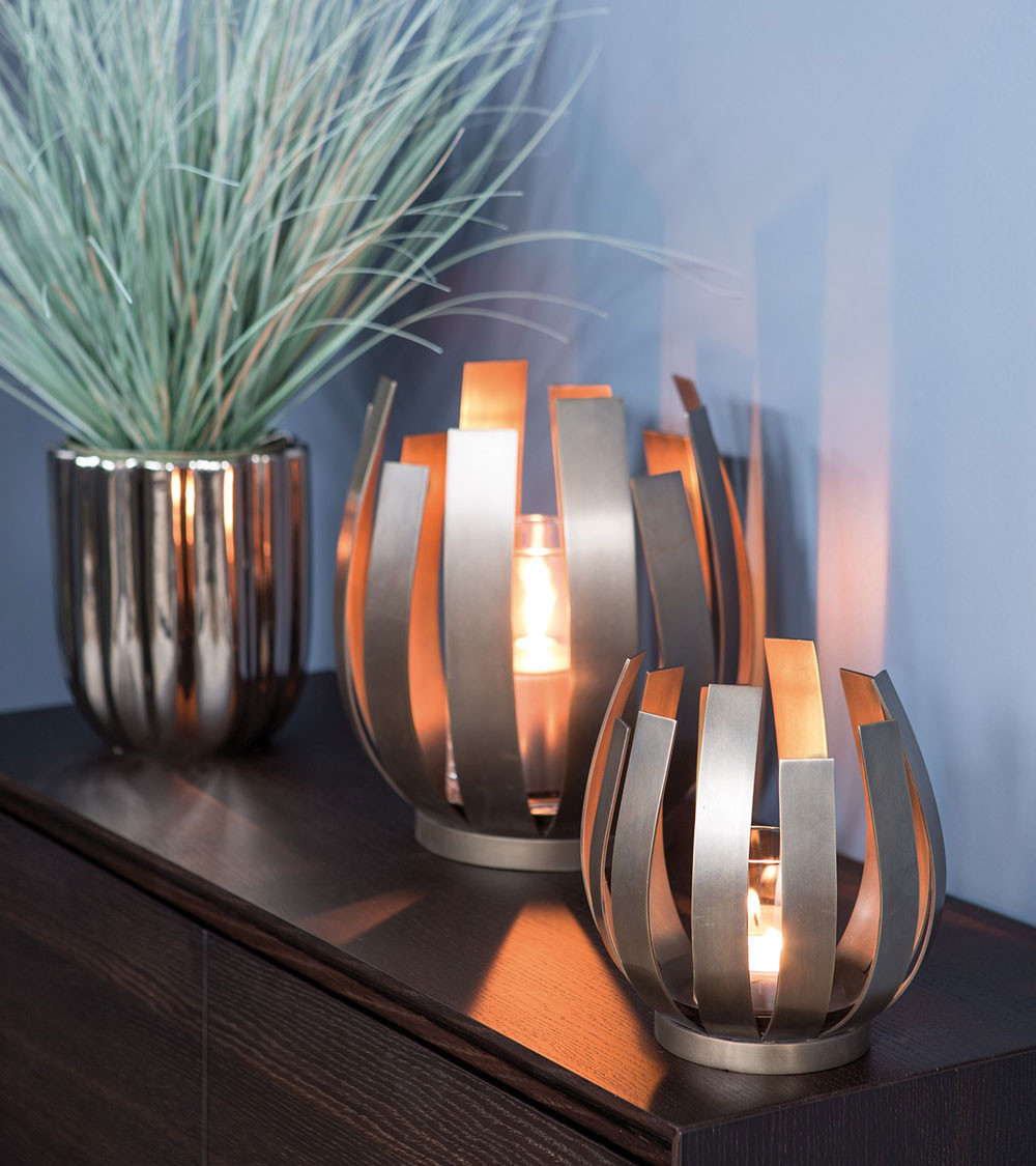 Le photophore Orfea H 30 cm a été conçu pour structurer l’espace par la lumière. Son design inspiré de la nature prend toute son ampleur dans ce grand format, où chaque ouverture de la structure métallique projette des ombres larges et graphiques. La flamme devient un véritable élément décoratif, visible et vivant.